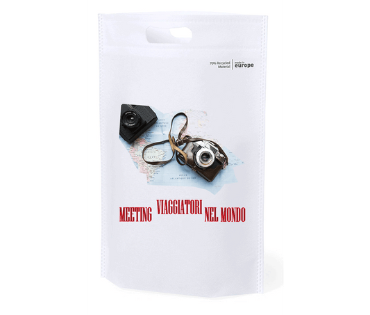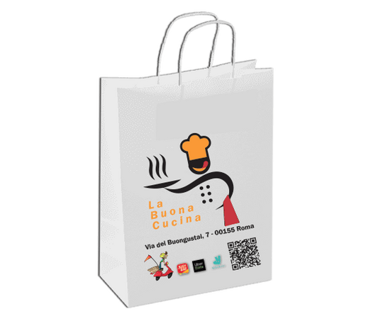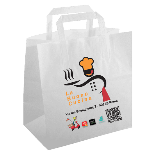 100 Shopper bianche manico piatto 22x29 personalizzate